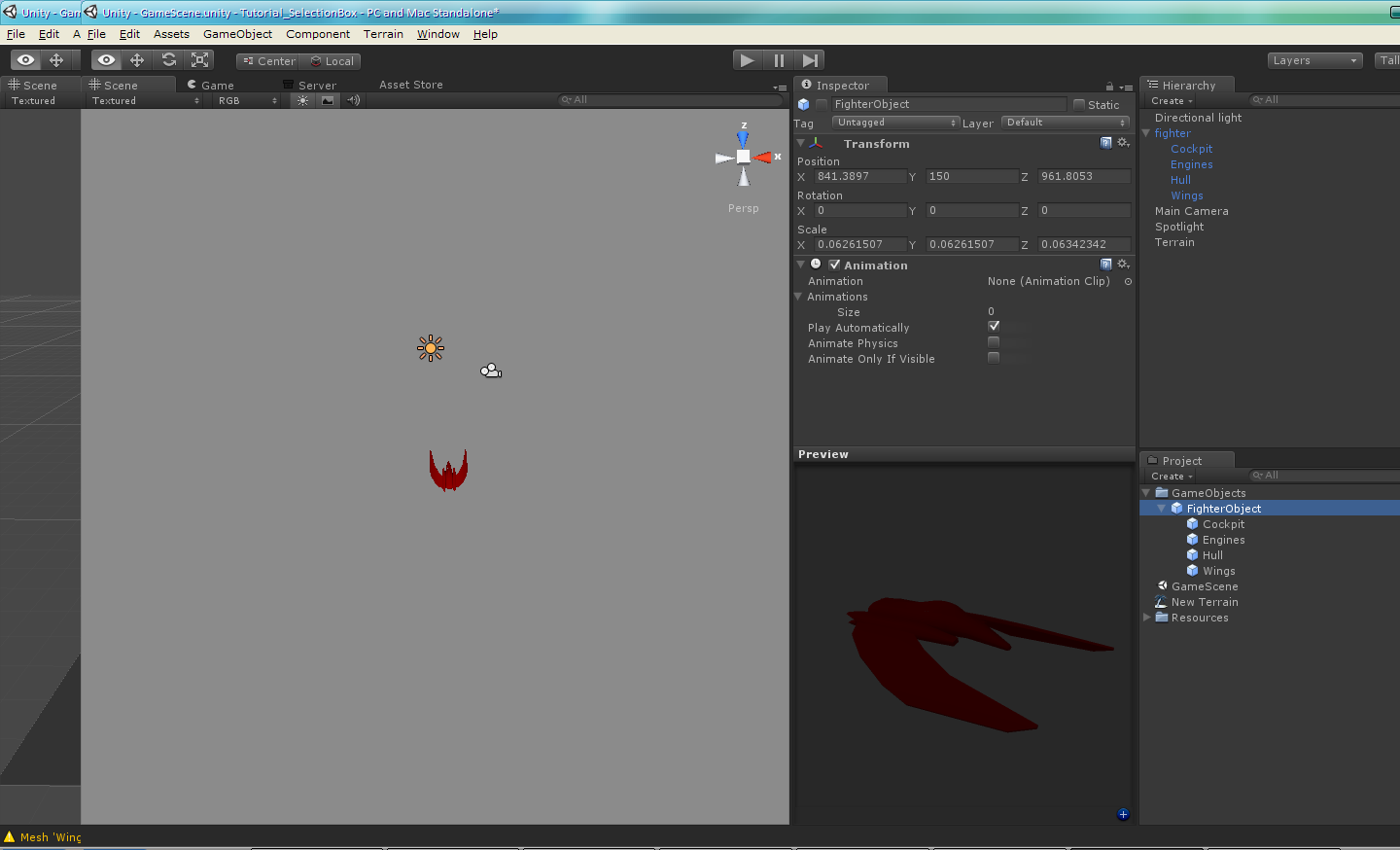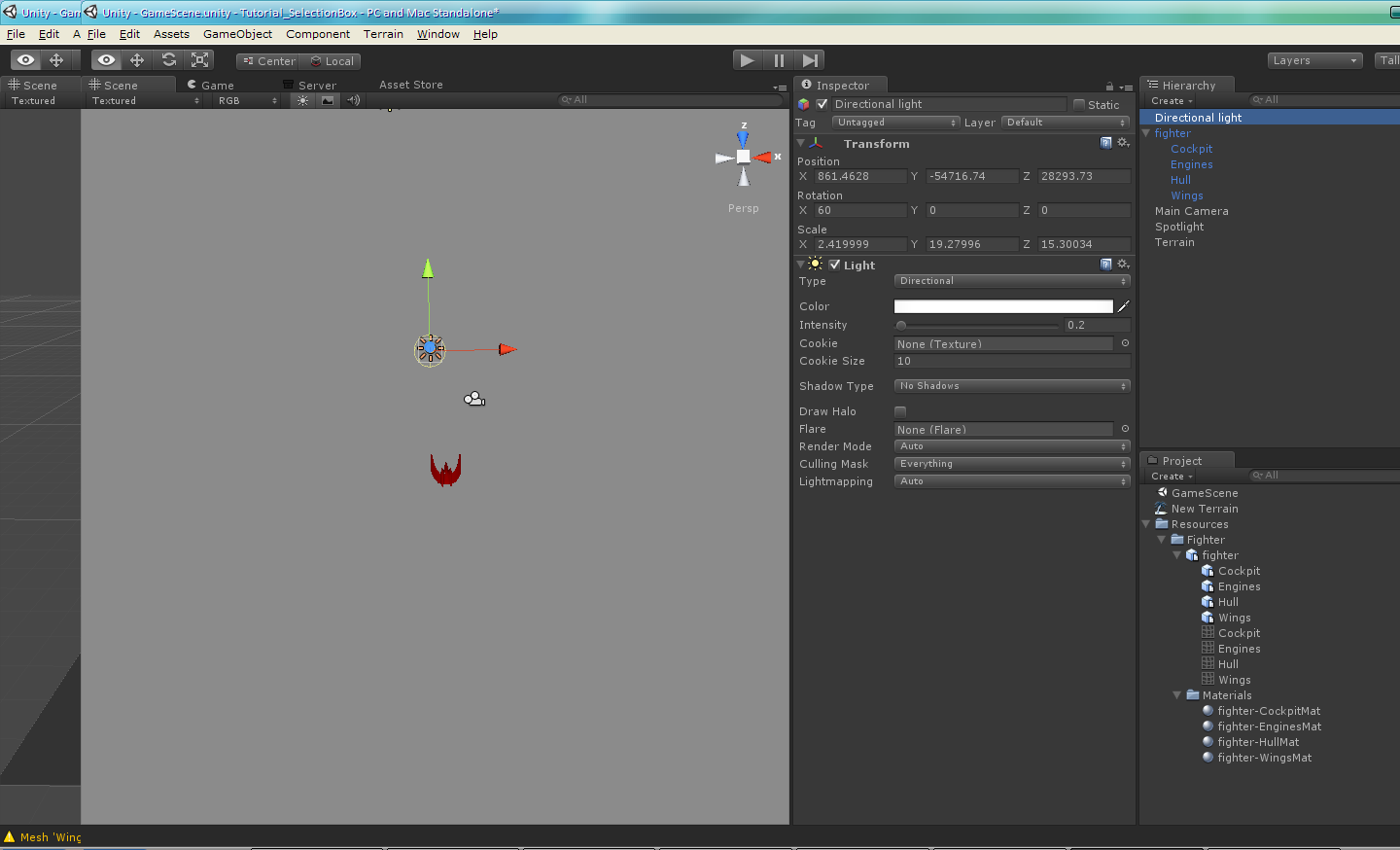 Vamos a borrar nuestro fighter original, no sin antes apuntarnos sus valores de posición (para no volvernos locos después, porque vamos a crear nuestros cazas desde código a partir del Prefab).